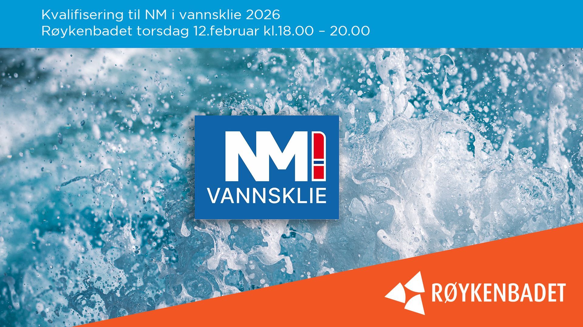 Torsdag 12. februar 2026 kl. 18.00–20.00 arrangeres kvalifisering til NM i vannsklie på Røykenbadet. De tre beste deltakerne i hver klasse kvalifiserer seg til finalen, som arrangeres lørdag 25. april 2026 i Nordlandsbadet i Bodø. Klikk her for mer informasjon.